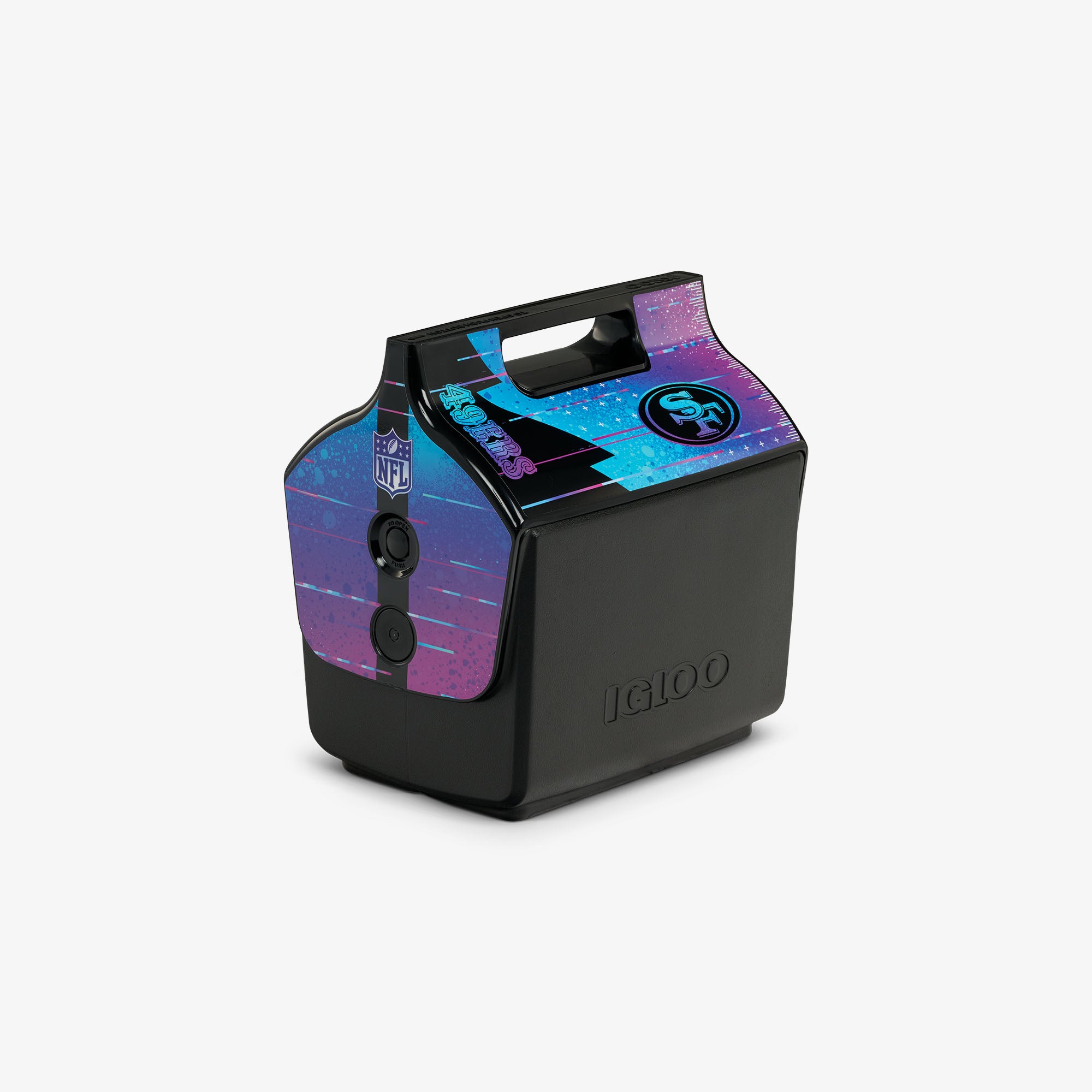 Light up the tailgate! And show your love and Dig Deep mentality with this LIMITED-EDITION officially licensed NFL personal-sized cooler featuring a bold black design and bright neon hits repping the 49ers. The Playmate is iconic and perfect for football fans on game days. workdays and every day in between. Go Niners!
